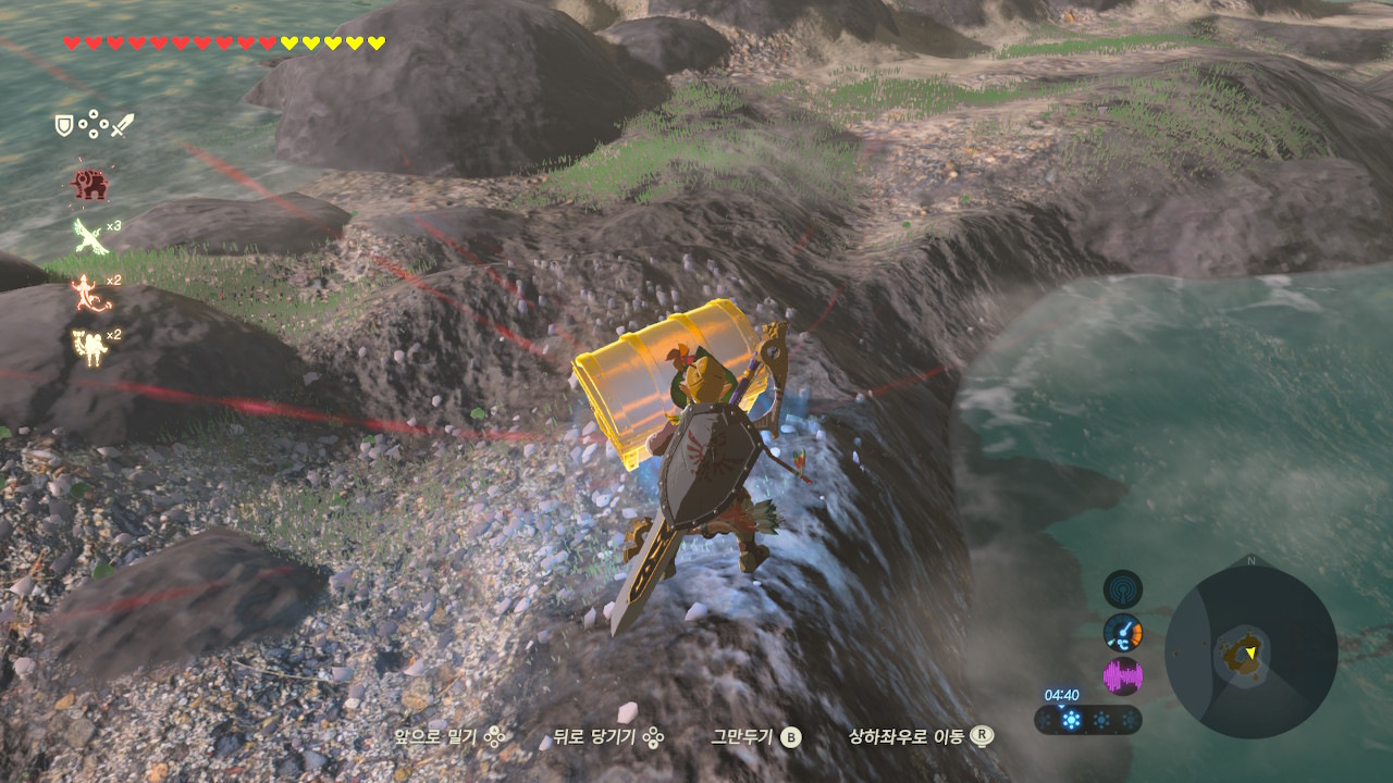 7. 불러오기로 접속을 하고 마그넷 캐치를 사용해 보면 물속에 보물상자가 또 있습니다.