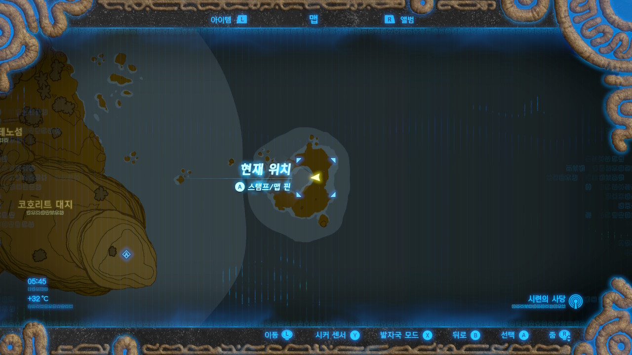 해당 장소에서 보물상자를 열고 나무 화살을 획득한 후 저장하고 불러오기로 다시 접속을 해보면 건져내서 열었던 보물상자가 닫혀있는 상태로 다시 물속에 들어가 있는 것을 볼 수 있습니다.
