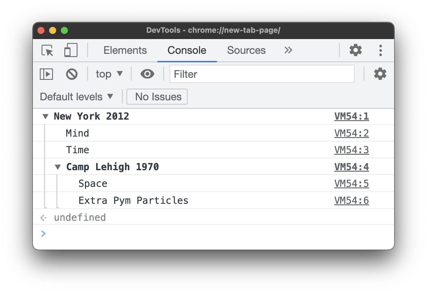 Same as console.group(label), except the group is initially collapsed when it's logged to the Console.