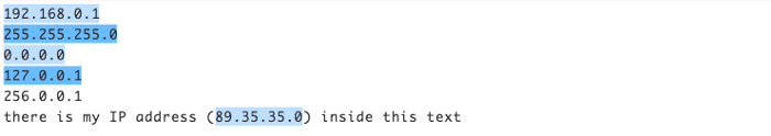 텍스트 내의 모든 유효한 IPv4 주소와 일치합니다.