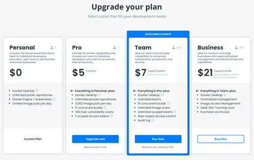 b. Docker 유료 플랜의 구독