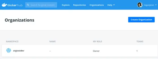 Organizations 탭에서 설정된 조직을 확인하고,