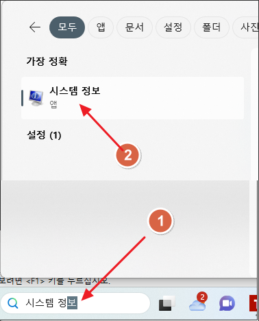 1. 윈도 검색창에 "시스템 정보"를 입력 후 들어가시면 OS정보를 확인할 수 있습니다.