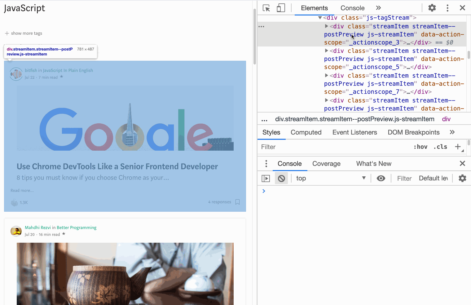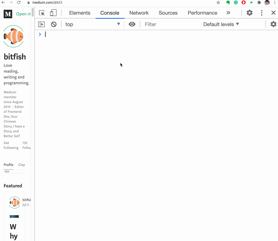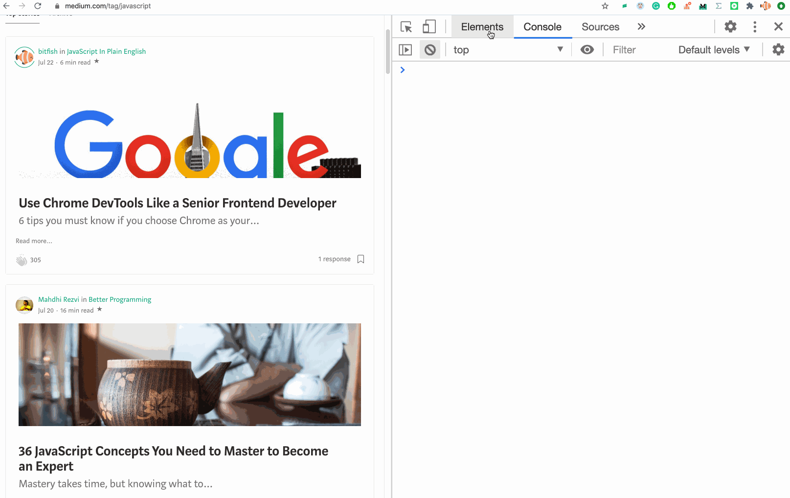 자, 어떠한 페이지도 좋다. 난 미디엄의 자바스크립트 페이지를 열어보겠다.
