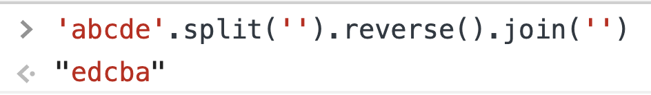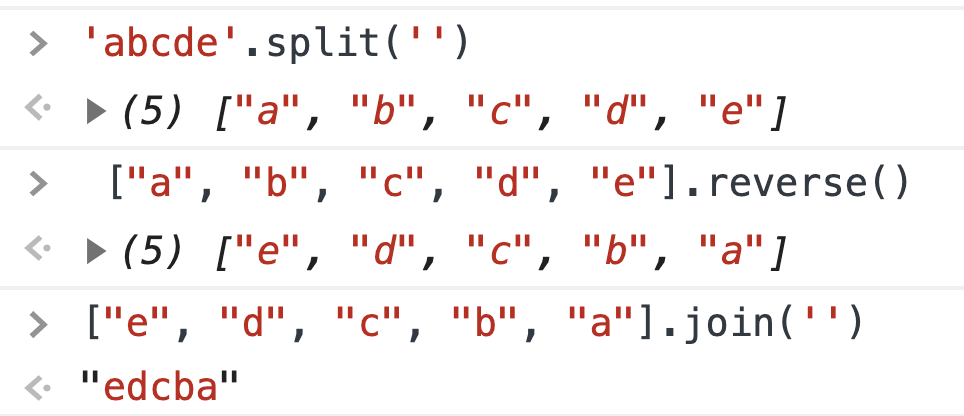 우리는 콘솔창에서 자주 디버깅한다. 자바스크립트에서 문자열의 순서를 거꾸로 뒤집기 위해서, 웹에서 검색을 해보고, 다음과 같은 코드를 찾았다.