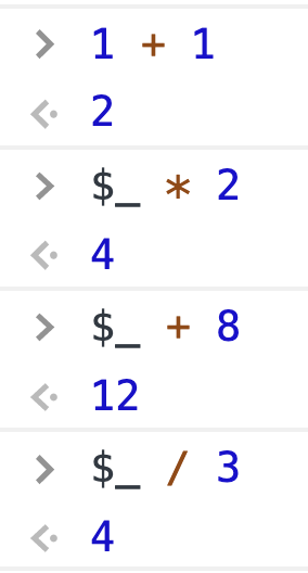 사실, 콘솔창엔 이전 결과값을 참조하는 마법의 변수 $_ 가 있다.