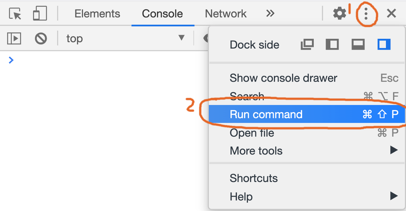 먼저 크롬 개발자 도구를 연 뒤, 다음 단축키를 입력해 Command 메뉴를 열어보자.