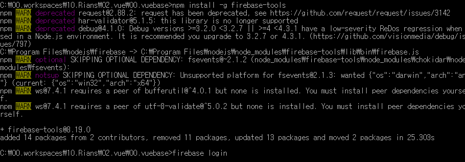 2. firebase CLI 설치 (inside project) 및 firebase 로그인